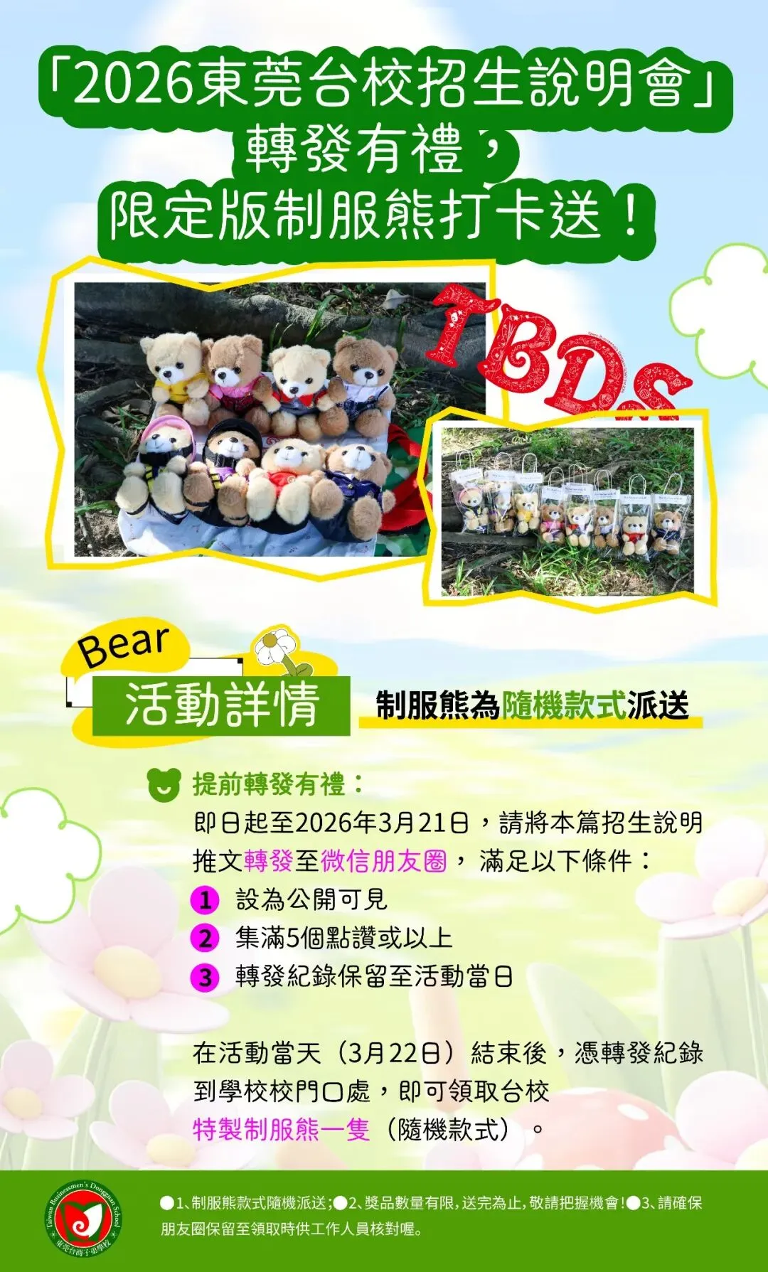 東莞台商子弟學校將於3月22日(週日)上午九時舉行招生說明會,透過讓家長及孩子深入了解東莞台校,解析其與大陸學校、國際學校的區別,分享辦學亮點與升學優勢,助家長陪伴孩子選對學習路徑,搭建通往夢想的橋樑,「誠邀您及孩子共同參與,為孩子的夢想助力。」