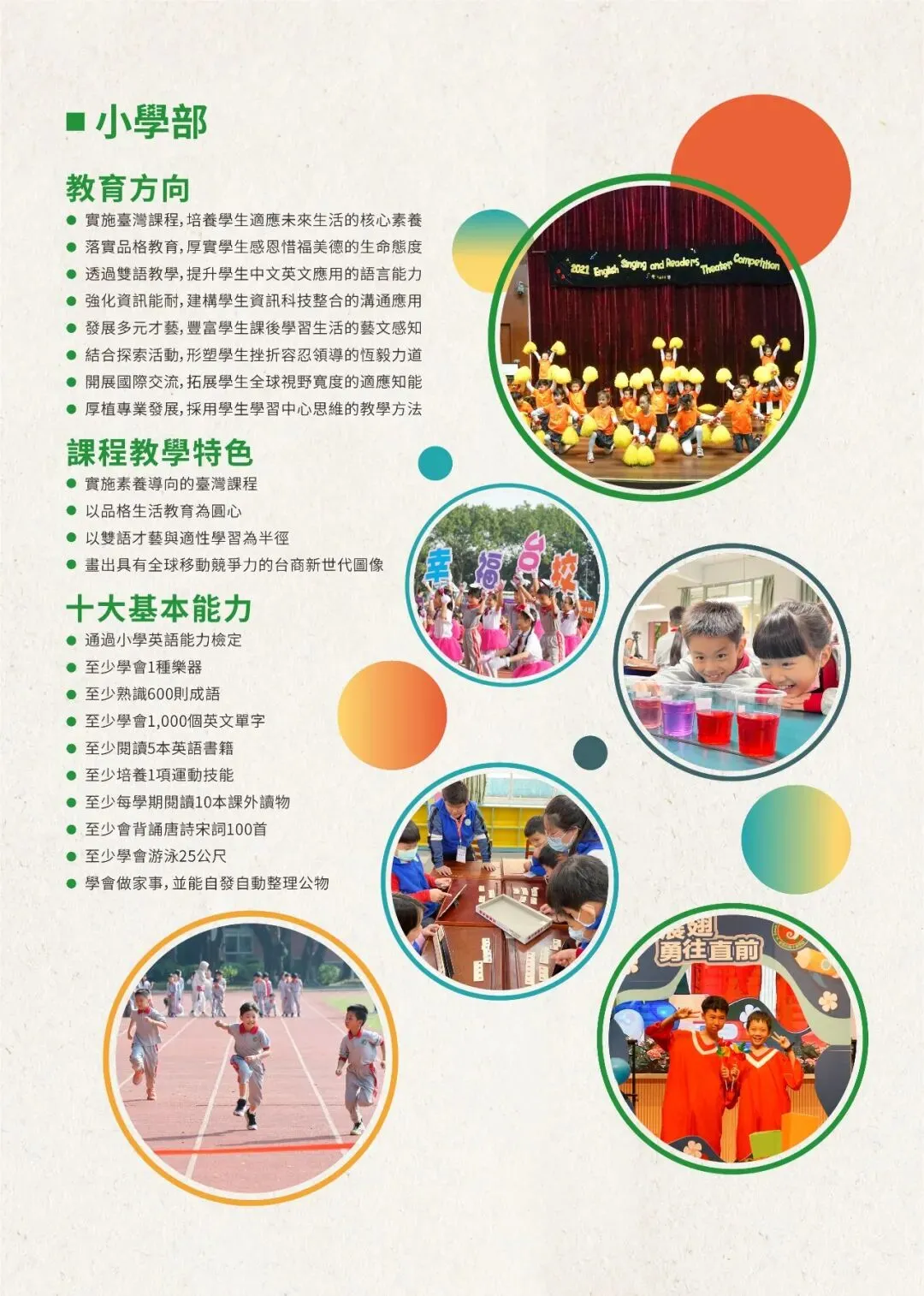 在課程設計上,學校以中華文化為根基,結合現代化教育方法,廣泛運用科技、網路及AI工具輔助教學,啟發學生窮真究理的精神,培養其主動探索、解決問题與自主學習的能力,最終目標是落實理性與感性並重、科技與人文融合的全人教育。