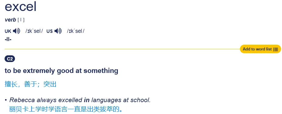 这是忘忧英语坚持更新的第720天,关注我,学习更多地道英语表达。大家也可以在“No Worries English”找到我实习生小王看着主管发来的表扬邮件“You really excel in Excel”,陷入了沉思:“‘你在Excel里超越’?这是夸我表格做得好,还是说我打开Excel的方式比别人更优雅?”每天打开电脑,我们都在和Word、Excel、PPT这“办公三件套”打交道。但你有没有想过,这些熟悉的软件名字,其实都藏着有趣的英语密码?特别是“Excel”——它不仅仅是一个表格软件,更是一个充满力量的动词。让我们一起揭开“Excel”的双重身份,看看当它从软件名“变身”为动词时,会发生怎样奇妙的化学反应。01“Excel”的双面人生:软件名还是动词?“You excel in Excel.” 这句看似绕口令的话,其实是一个精妙的双关语。第一个 excel 是动词,意为 “擅长、出类拔萃” ;第二个 Excel 是名词,指微软的电子表格软件。所以整句话的意思是:你非常擅长使用Excel软件。这是一个完美的赞美,既夸赞了对方的能力,又巧妙运用了语言的趣味性。那么,这个软件为什么要叫“Excel”呢?其实这是一个精心设计的营销双关。一方面,“excel”作为动词意味着“超越、胜过”,暗示这款软件能让用户的工作效率超越以往。另一方面,电子表格中最基本的单位是“单元格”(cell),“Excel”的发音与“excel”相近,可能暗示着它与“cell”的亲密关系。1985年,微软推出了这款电子表格程序,从此“Excel”这个单词在全世界拥有了双重身份——它既是办公软件的代名词,也是一个充满力量的英语动词。02当“Excel”变成动词:两种核心用法作为动词,excel [ɪkˈsel] 主要有两种含义:1. 擅长、善于这是最常见的用法,表示在某方面表现出色、出类拔萃。通常与介词 in 或 at 搭配。例句:“She excels in dancing.” “她在舞蹈方面出类拔萃。”2. 超越、胜过表示在成就、表现上超过他人或自己过去的水平。例句:“Rick‘s cooking was always good but this time he really excelled himself.”“里克的烹饪技术一直不错,但这次简直是超越了自己。”很多学习者看到“excel”有“超越”的意思,就想当然地认为可以说 “You excel me” 来表示“你超过了我”。但在现代标准英语中,这种用法并不自然,甚至被认为是错误的。excel 通常不直接接人作宾语。而是:✅ excel at/in something(在某方面擅长)✅ excel oneself(超越自己)如果你想表达“你比我厉害”,更地道的方式是:✅ You are better than me.(最自然)✅ You surpass me.(较正式)✅ You outshine me.(你比我更出色)剑桥词典明确指出:excel 是不及物动词,不能直接接人作宾语。这是一个容易掉进去的“语法坑”,一定要注意!03其他办公软件名称的趣味知识说到Excel,就不得不提它的“兄弟”们——Word和PPT,它们的名字同样暗藏玄机。1. Word [wɜːd] 微软的文字处理软件本意是单词;话语。比如 word for word(逐字逐句地),take my word for it(相信我说的话,相当于Believe me),have a word with someone(和某人私下谈谈)等等。2. PowerPoint [ˈpaʊər pɔɪnt] 演示文稿软件本意是力量的焦点;有力的观点。这个名字完美诠释了软件的功能——把你的观点变成“有力的焦点”3. Premiere [ˈpremieə] 视频剪辑软件(常简称为Pr)本意是首映、首演。例句:“The world premiere of the movie will be next week.”“这部电影的全球首映将在下周举行。”一个小小的“Excel”,既是每天陪伴我们的办公软件,又是一个充满力量的英语动词。它提醒我们,语言学习就藏在日常生活的点滴中——那些我们习以为常的词汇背后,往往有着意想不到的深度。那么,思考一下:如果说“excel in Excel”是夸人表格做得好,那“word in Word”又该怎么理解呢?当你听到有人对你说 “You have my word” 时,他到底在承诺什么?关注我,学习更多英语知识和学习方法。为了营造良好的学习氛围,督促大家坚持每天打卡学习英语,相互鼓励和陪伴,忘忧英语组建了一个打卡群。(想要进群的伙伴加微信咨询, 微信号:a-370547241 )。作者简介:Frank Yao,英语专业背景,长期从事英语翻译与语言相关工作,现就职于国际化企业。关注英语表达背后的逻辑、语境与真实用法,致力于帮助学习者摆脱中式英语,真正“理解英语”。有读者反馈说收不到推文,设置【星标/Star】即可准时收到