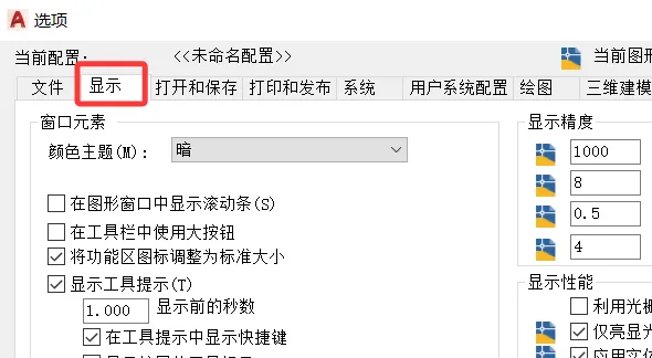步骤三:打开选项命令后弹出如下图的对话框,通过选项可以对CAD的一些功能进行相关的设置。