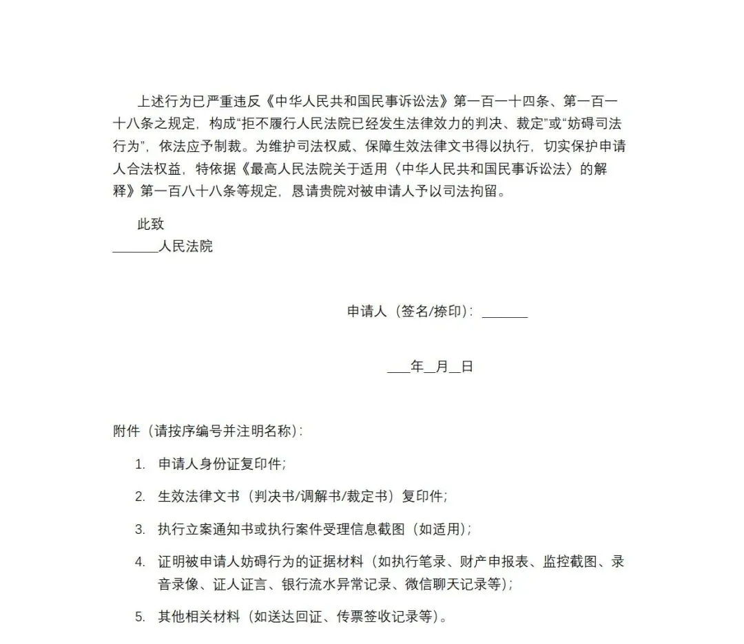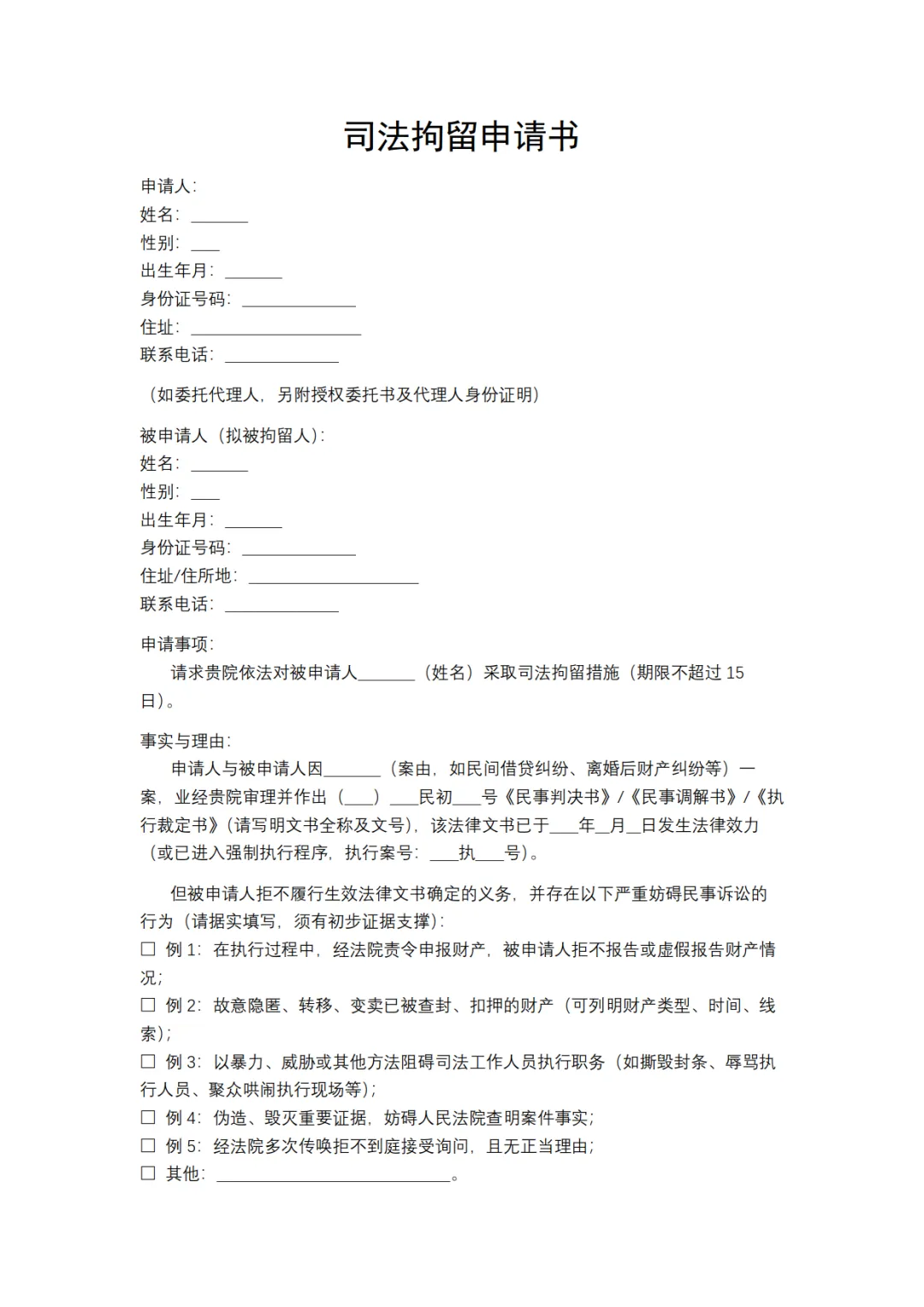 司法拘留申请书模板,WORD文档电子版,可免费下载打印