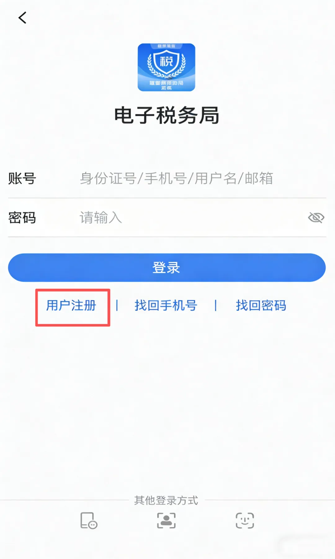 首次使用电子税务局(含网页端、APP)的新用户,需完成「注册+实名认证」,具体步骤:点击APP底部【我的】→【立即登录】→【用户注册】,按以下四步操作: