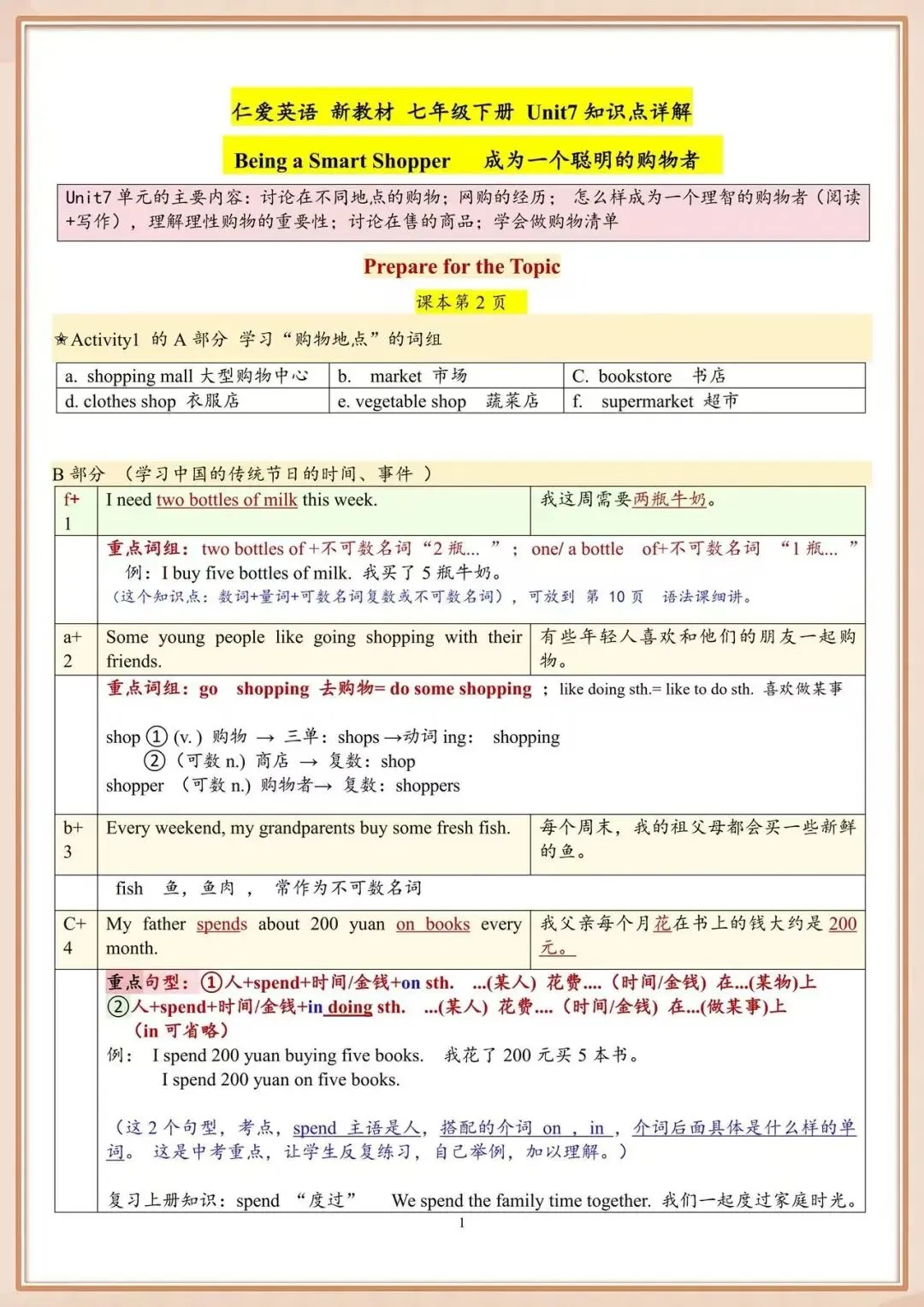 2026新仁爱版七下英语|全册重点知识点详解,完整电子版可打印!