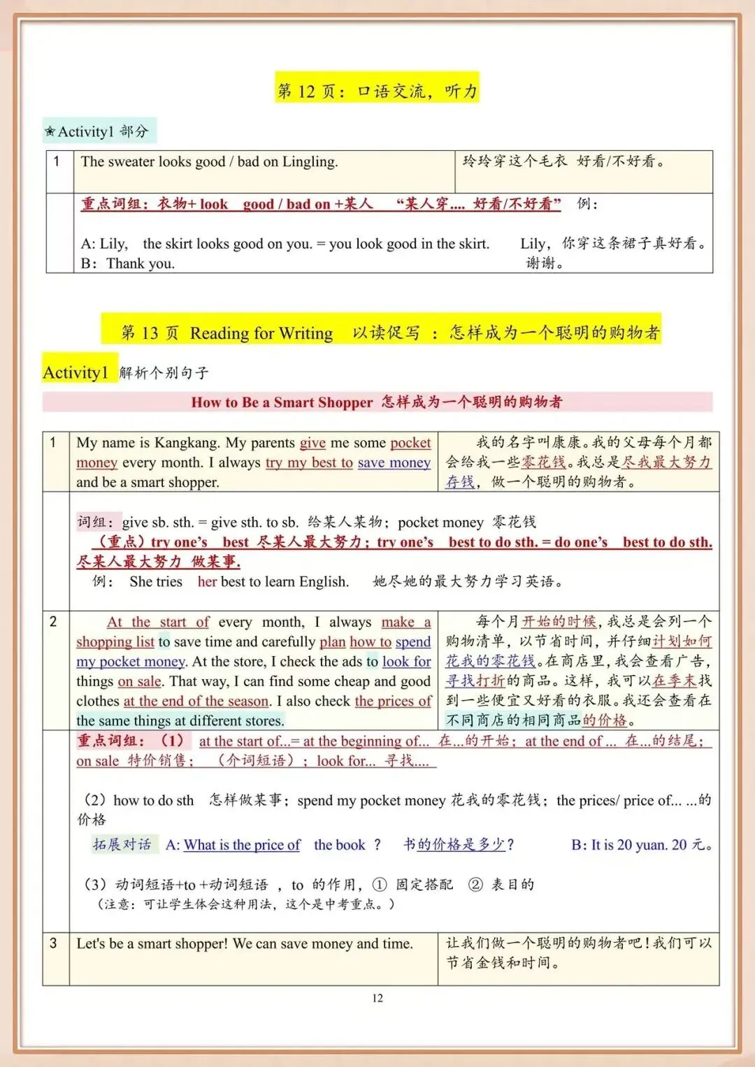 为了帮大家避开学习误区,高效吃透课本,今天我们结合核心教辅资料,把Unit7至Unit12的核心重点句型和语法难点做了一次超全整合。