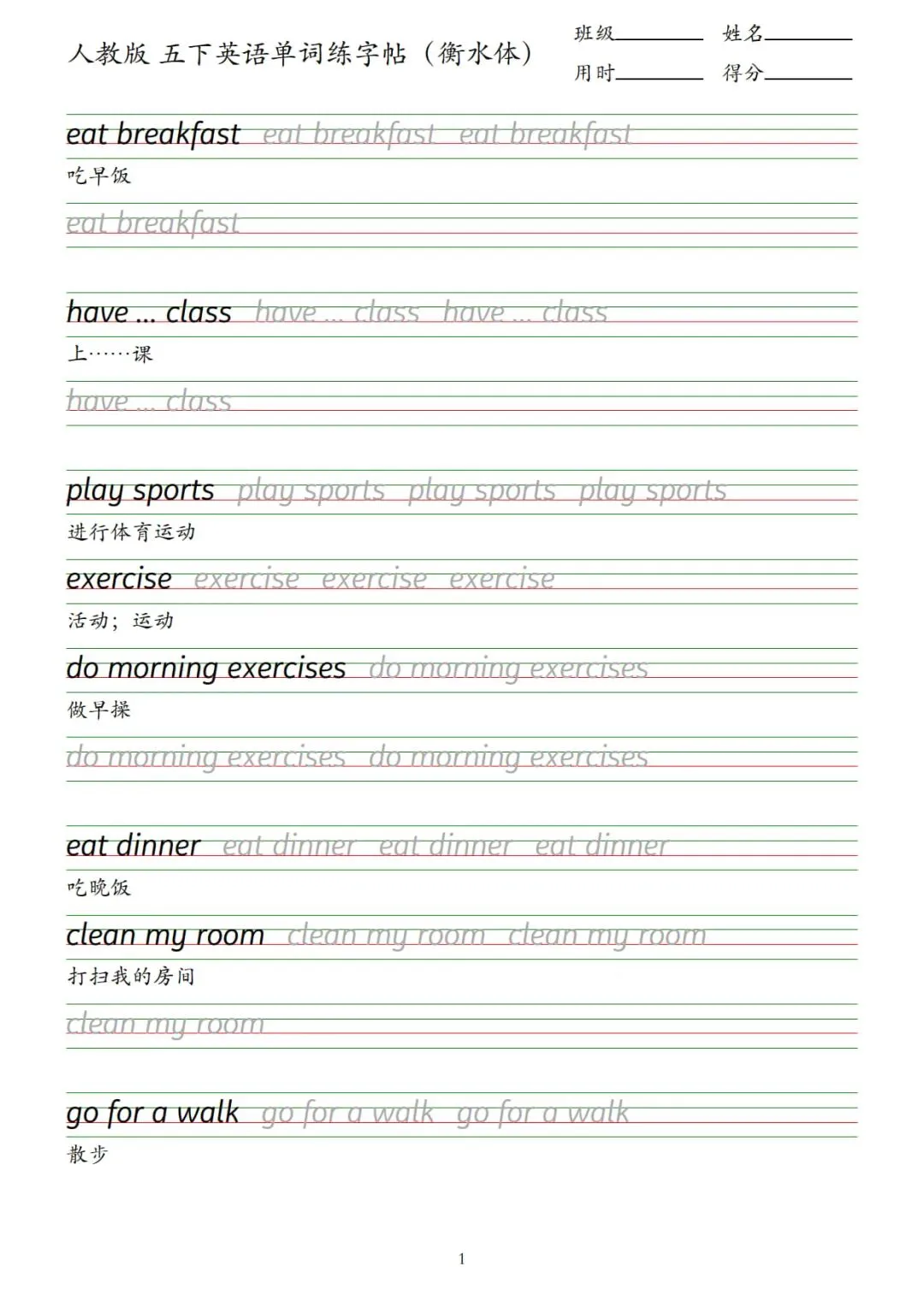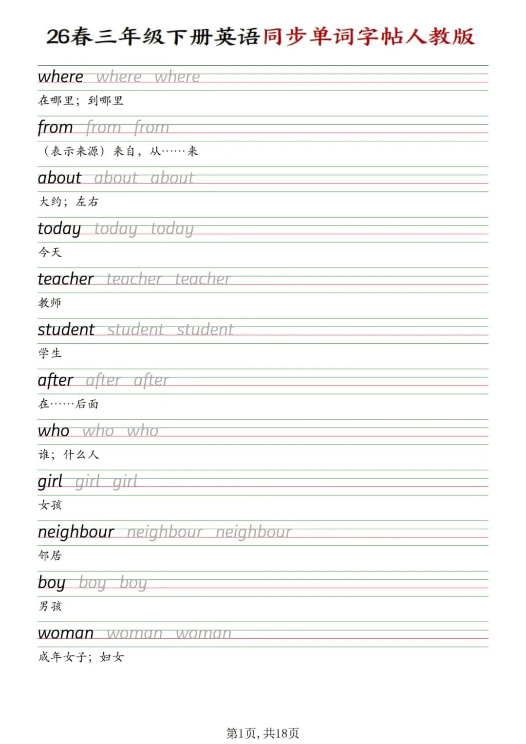 人教版英语单词默写字帖