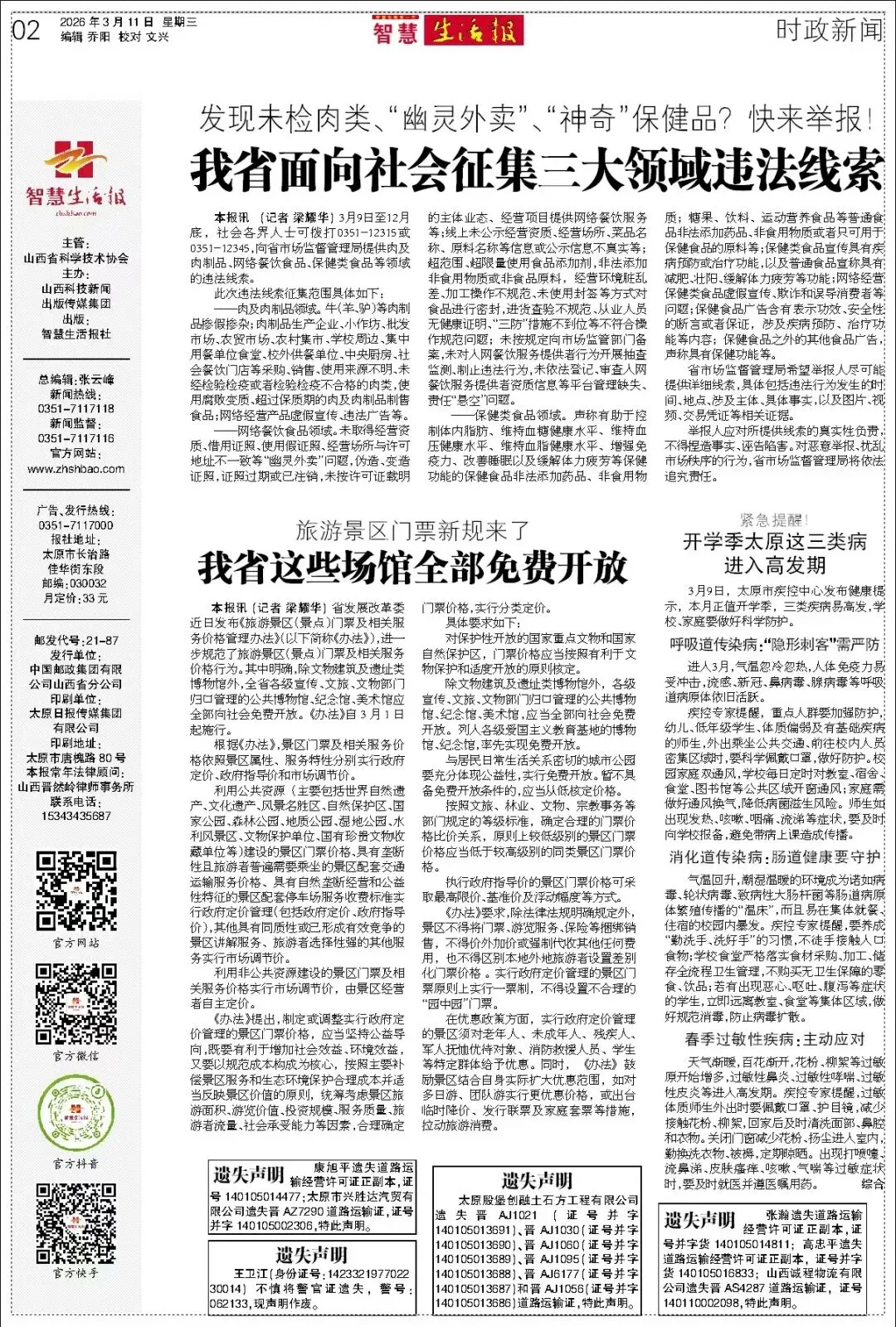 2026年3月11日《智慧生活报》电子版 ↑点击上方“晨报长治”关注公众号 ↓ ↓ ↓ 〔01版〕 〔02版〕 〔03版〕 〔04版〕 〔05版〕 〔06版〕 〔07版〕 〔08版〕 〔09版〕 〔10版〕 〔11版〕 〔12版〕 〔13版〕 〔14版〕 〔15版〕 〔16版〕 来源|智慧生活报 编辑|王 嘉 审校|李红森 终审|孟宪亨