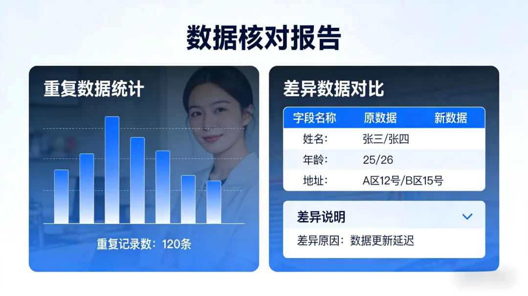 再者,核对精度更高。人工核对数据,难免会因为视觉疲劳、粗心大意出现错误,而AI具备精准的数据分析能力,能快速捕捉到细微的差异,无论是数字偏差、信息遗漏,还是重复录入,都能精准识别,大大降低了出错率,为工作质量提供了保障。