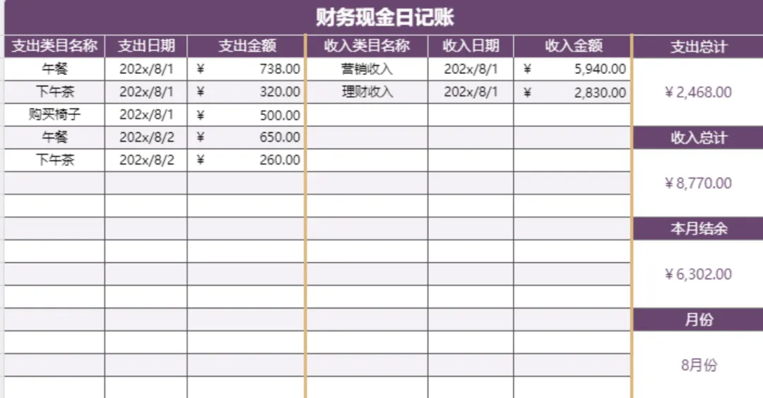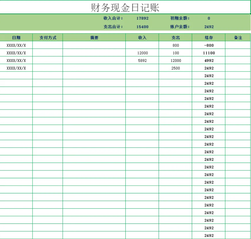 现金日记账模板(excel电子版可编辑可打印)【免费保存下载】