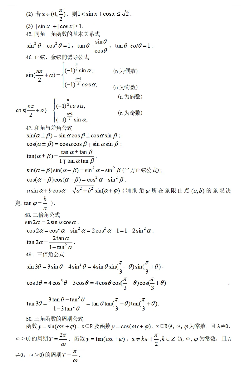 马上收藏|高中三年必背数学公式汇总(附电子版) 马上收藏|高中三年必背数学公式汇总(附电子版) 不管你是高一、高二还是高三,答应我都收藏起来好吗?关键时刻都用得到!(附本文电子版) 高中数学(新教材版) 高中数学常用公式和结论 往期推荐 高中英语 | 新人教必修1、2、3册选择性必修1、2、3、4同步听力音频+录音原文合集 高考英语|近5年高考 阅读理解572个高频词汇总 马上收藏啦!人教版高中英语必修123+选择性必修1234课文英汉对照+音频+词汇表汇总。可下载mp3 新课标:高中必背72篇古诗文(朗诵版+文本,含mp3音频) 如果觉得文章有用,就点赞、分享一下吧! ↓↓↓