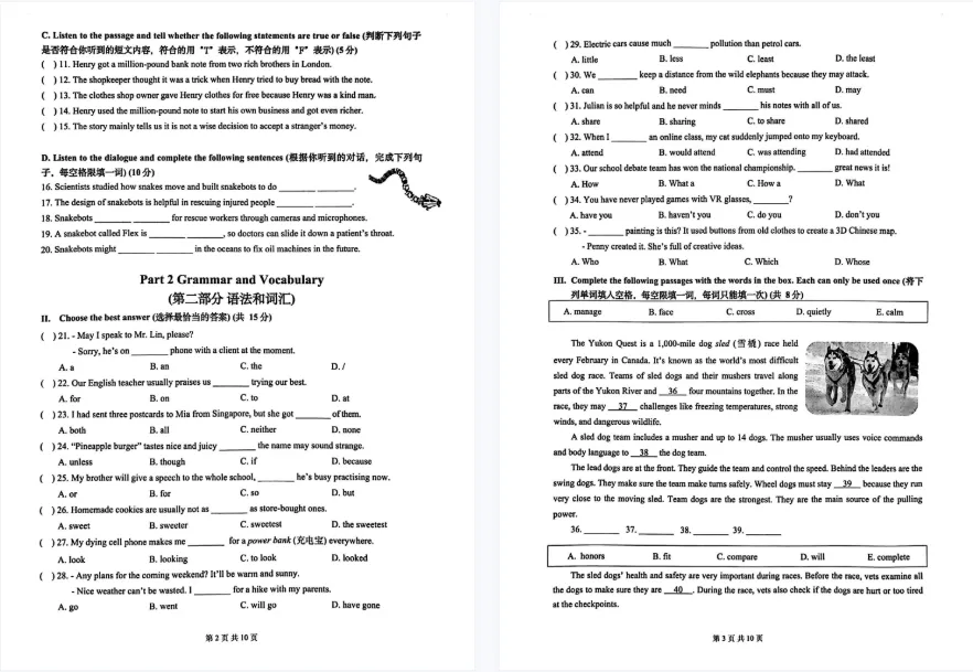 篇幅有限,我们仅能展示部分内容,想要领取汇总版的PDF电子版试卷和答案,文末免费下载!