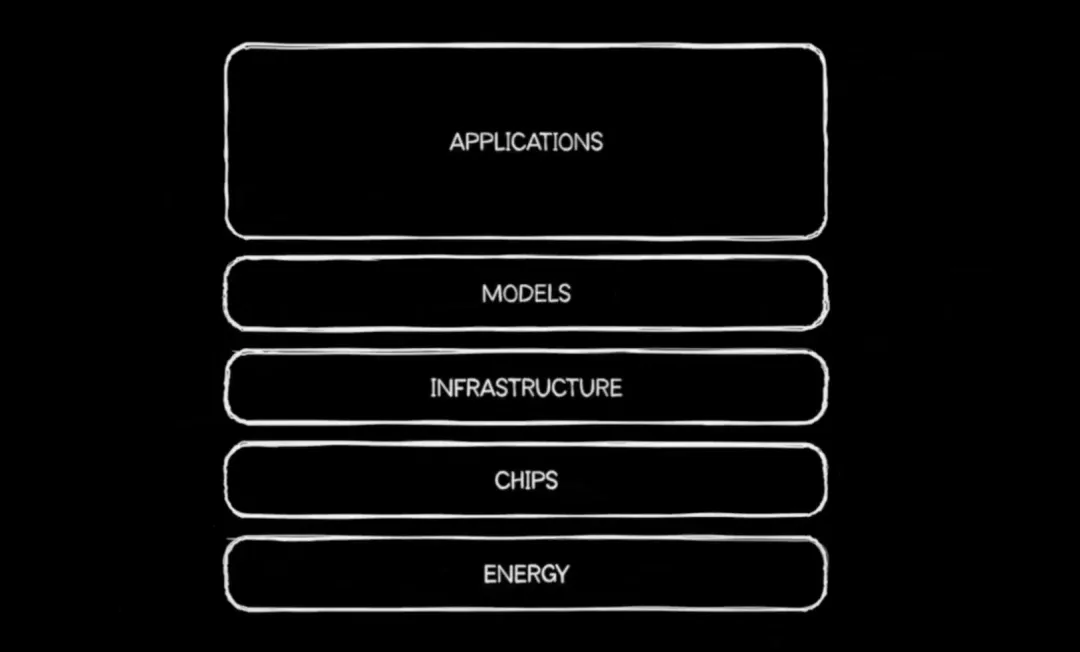 能源 → 芯片 → 基础设施 → 模型 → 应用。