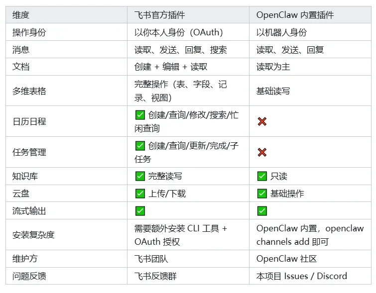 飞书官方 vs OpenClaw 内置:怎么选?