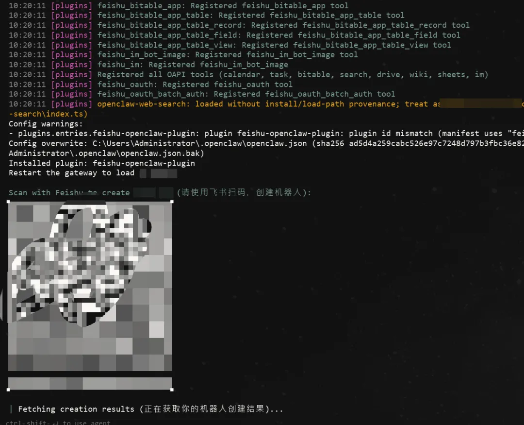 4. 安装完成后使用飞书扫码授权二维码