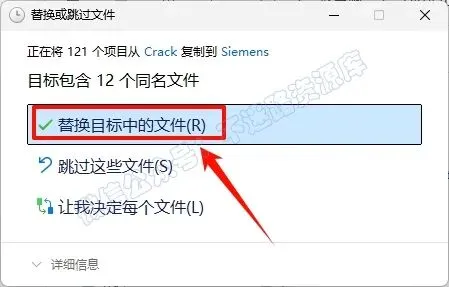 18.点击“替换目标中的文件“(若提示需要权限,勾选“为所有…”,点击“继续”)