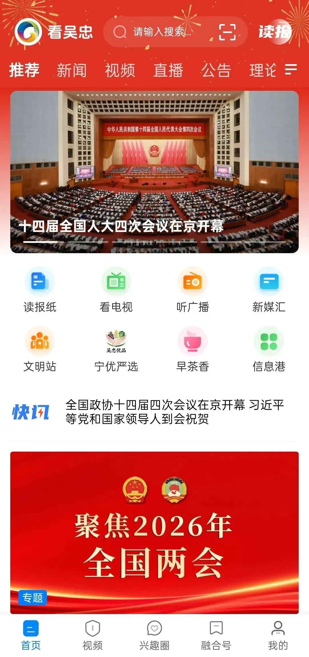 从此告别来回切换的烦恼——📰 读报纸:在线翻阅当日及往期《吴忠日报》原版,体验便捷的深度阅读。📺 看电视:点开吴忠广播电视台综合频道,《新闻观察》《有事您找我》《平安119》等节目高清点播,想什么时候看就什么时候看。🎧 听广播:同步收听吴忠人民广播电台FM91.6实时直播。