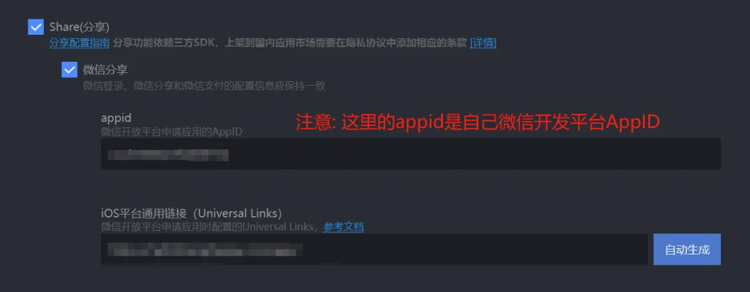 uniapp manifest.json文件中,模块配置要开启Share(分享)模块