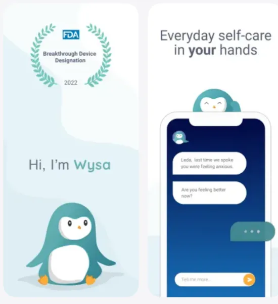 Wysa是一款较为知名的AI心理聊天应用,以一只企鹅形象作为AI助手。用户可以通过聊天形式表达情绪,同时结合平台提供的心理训练工具进行情绪调节与压力管理。