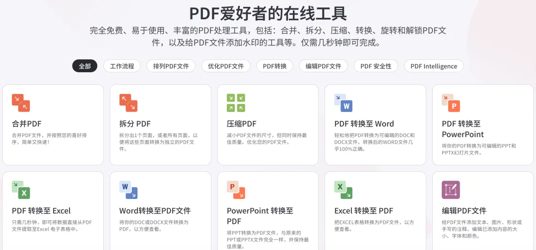 PDF合并、拆分、压缩、转格式?这个免费在线神器全搞定,办公人必收藏!