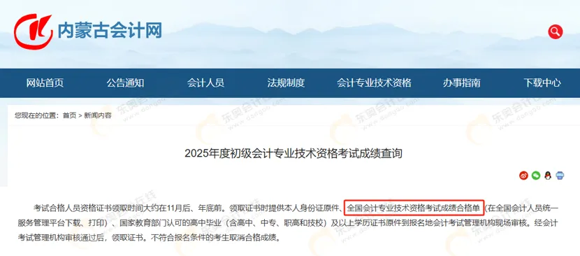 不过25年初级考试考前审核、报名、查询成绩等流程都是通过全国会计人员统一服务管理平台进行操作。下载成绩合格单的入口可能也会有所变动哦。