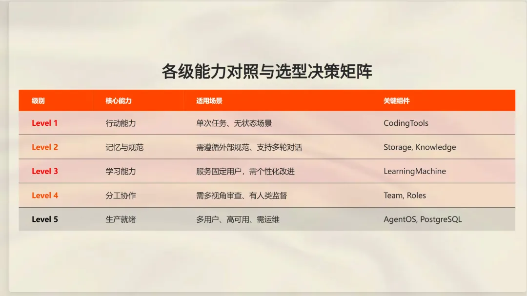 把这些级别看作能力层级,记住每升一级都会增加复杂度,而复杂度是有代价的。只有在更简单的方法明确失败时,才支付这个代价。
