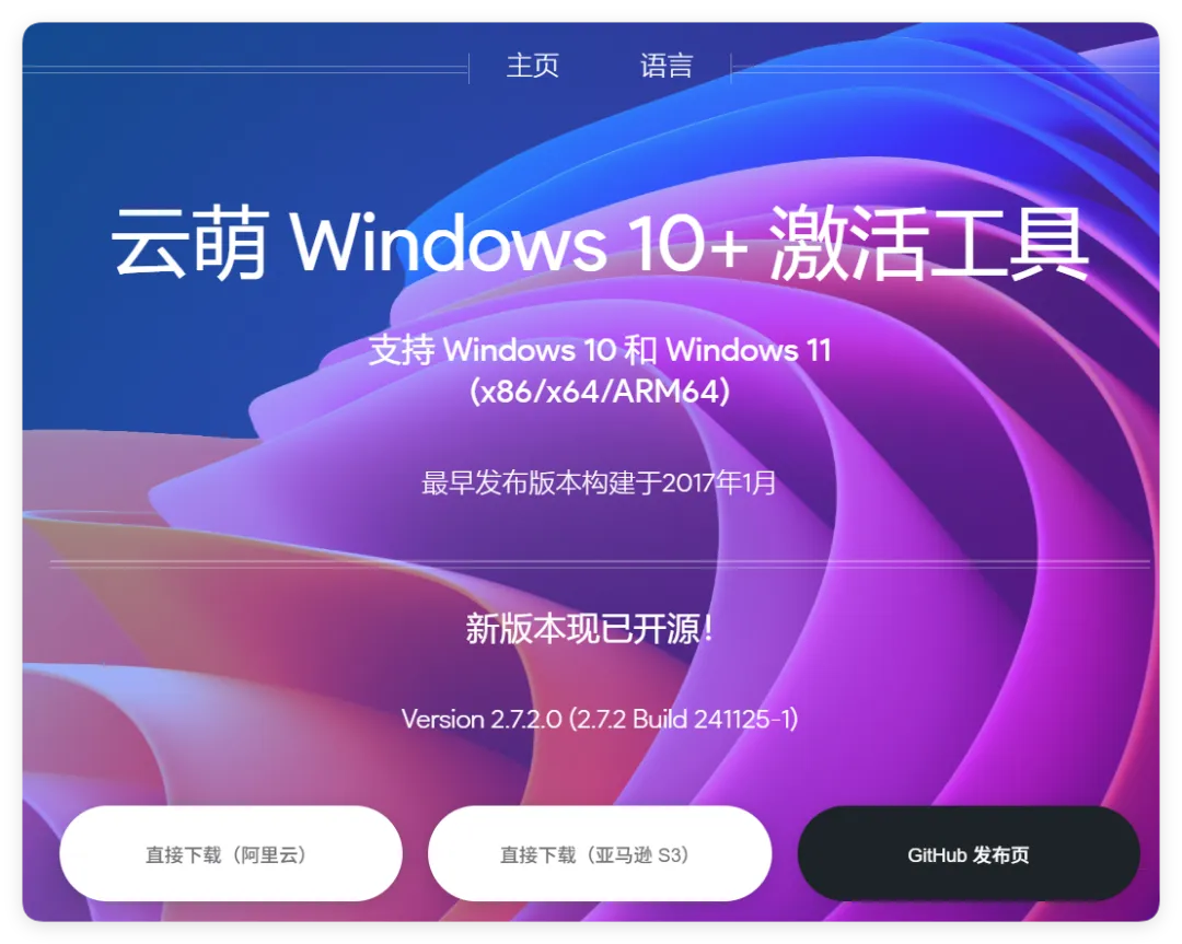云萌Windows 10+ 激活工具是一款免费开源的激活工具。