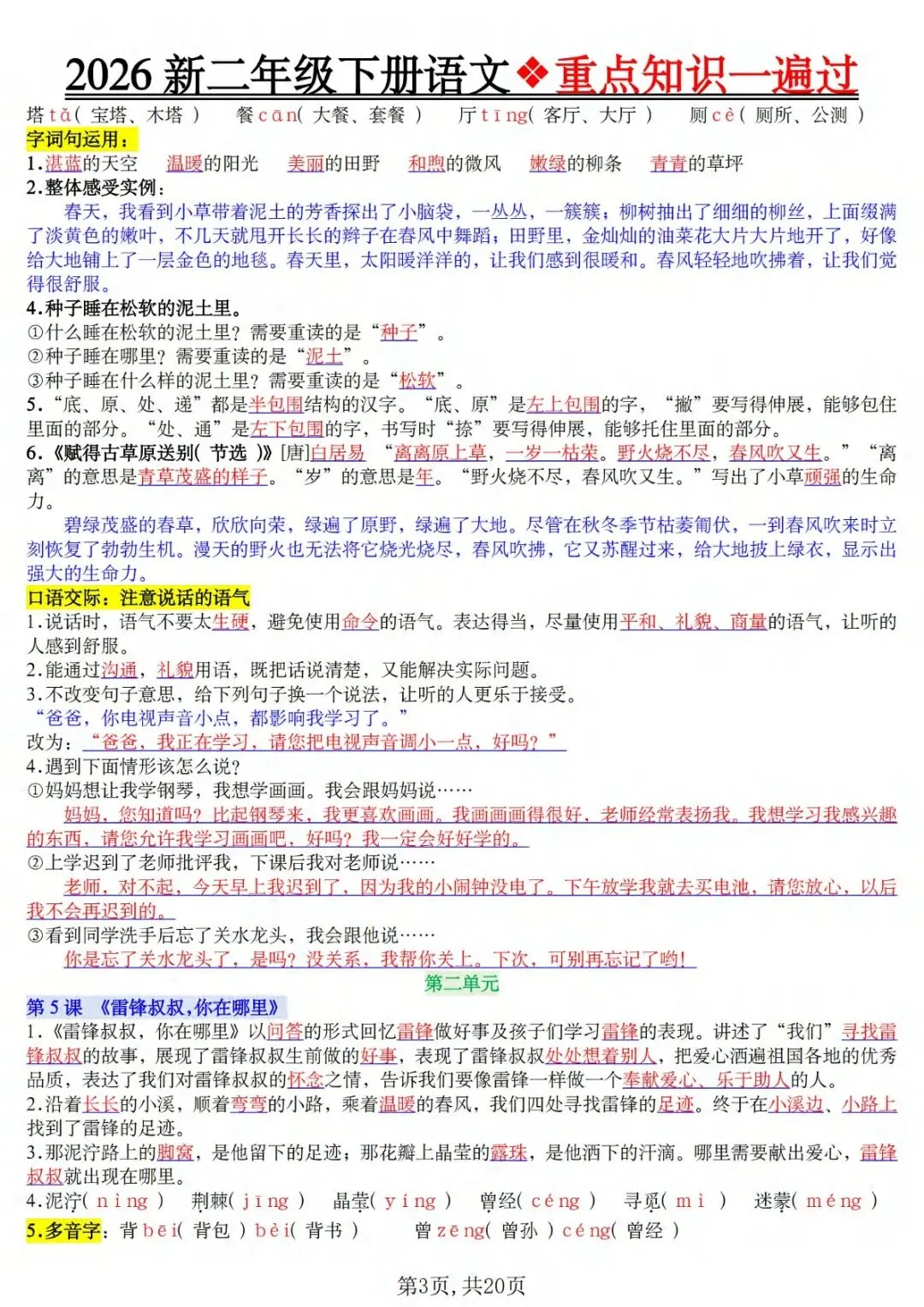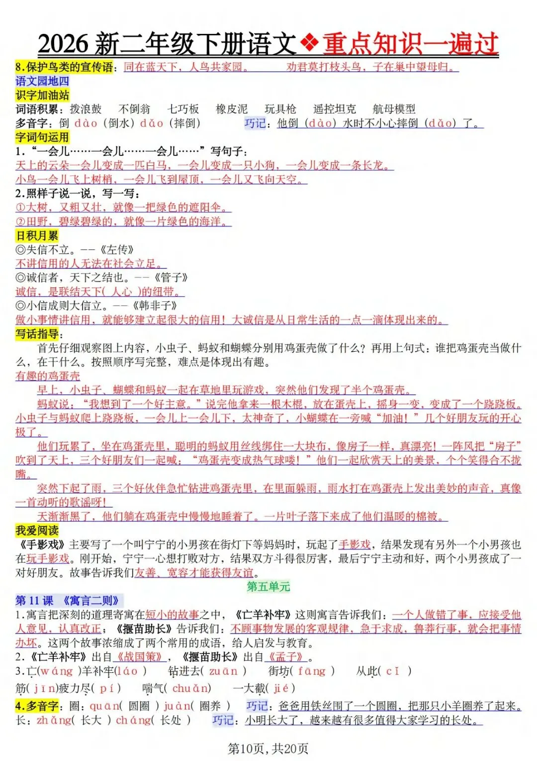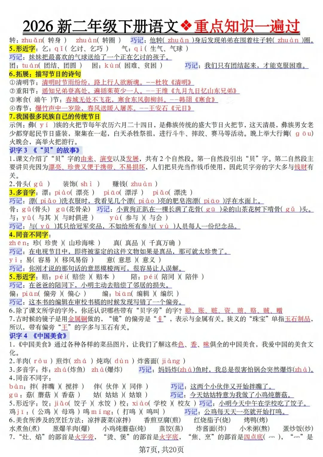26春新版二年级下册语文重点知识一遍过,同步部编版课本全册核心内容,电子版可下载打印,主打精简干货、高效复盘,帮孩子快速吃透本册必学考点,告别零散复习,适配日常巩固、单元复盘、考前冲刺全场景。