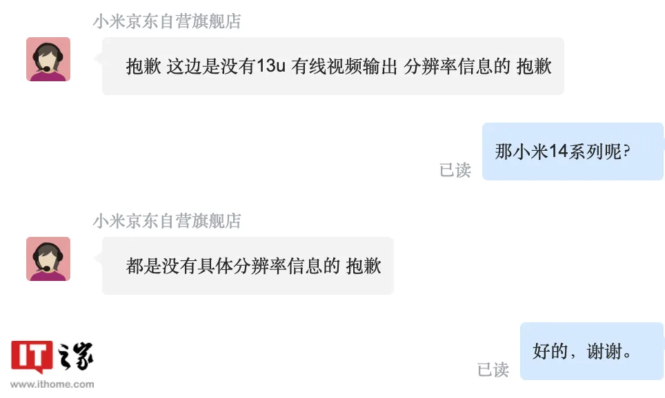 手机的 USB-C 接口除了支持充电、传输数据外,还可以具备传输视频信号的能力,IT之家编辑在咨询了小米京东自营旗舰店的客服后,得到的回复是小米 14 系列手机的 USB-C 接口支持视频信号传输,传输规格为 DP1.2。
