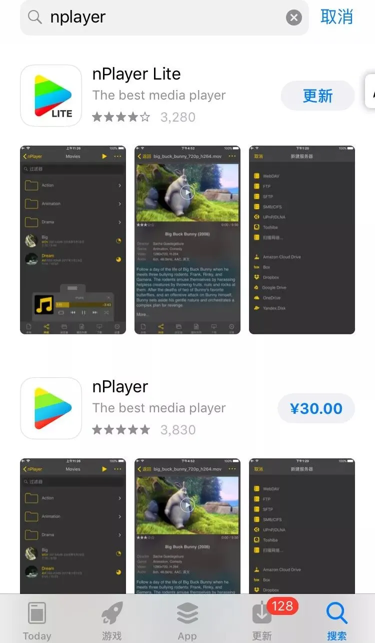 我们只需要去AppStore下载一个叫nPlayer的App。然后点击迅雷下载完成的文件,在打开方式选择存入系统自带APP“文件”里,以后即使证书掉了,也可以从文件里打开电影用nPlayer播放。