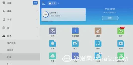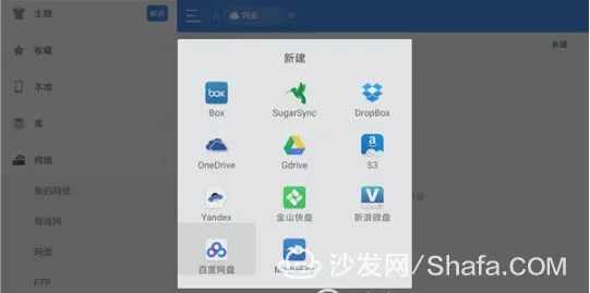 打开ES文件浏览器,通过左侧功能栏找到网络>>网盘选项