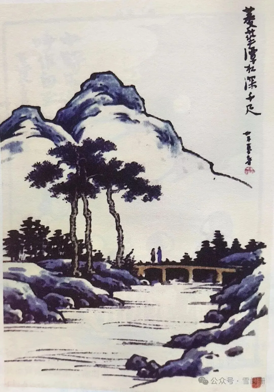 苍松远山,小桥流水。如画的风景中,横跨菱华潭水的石桥上,影影绰绰中有两个人手拉着手似乎在告别。是老是幼、是男是女不得而知。