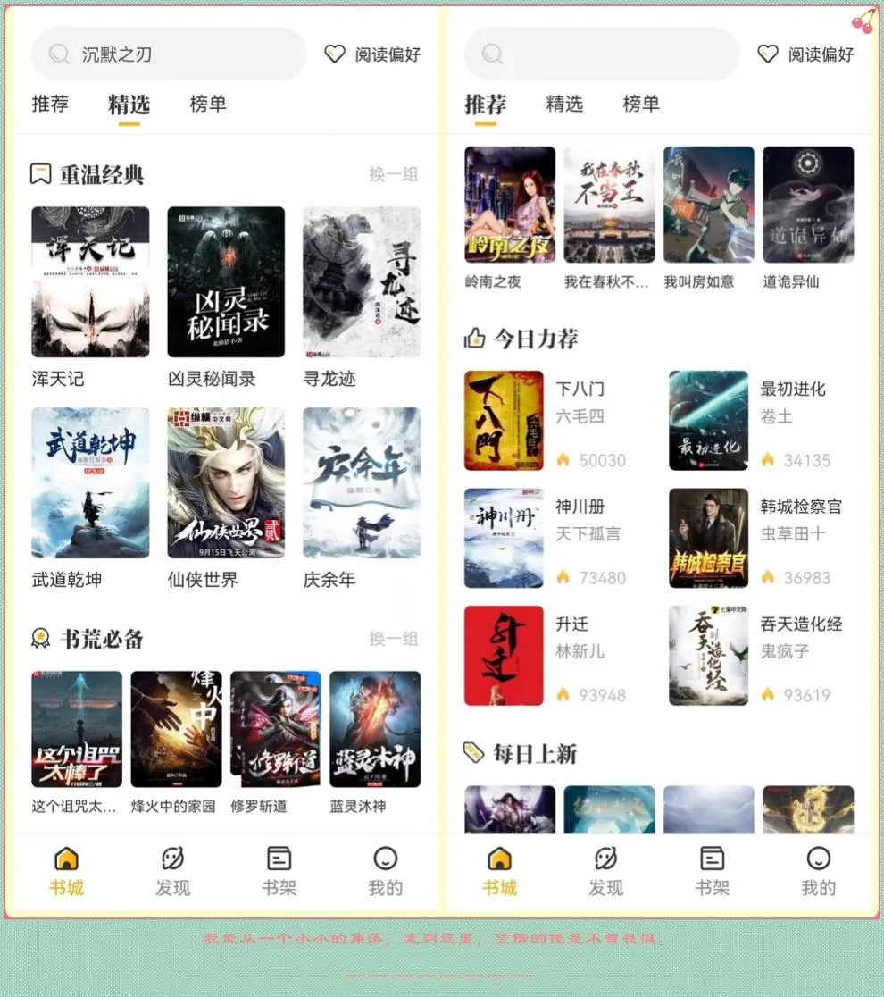 APP自带塔读、笔趣阁、同人、零点等上千精选书源统统免费换着看,基本上,大家想看什么都能直接看得到,体验真的爽。