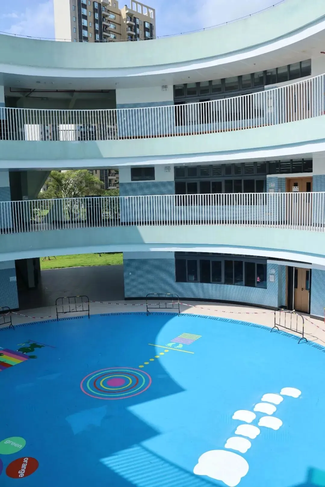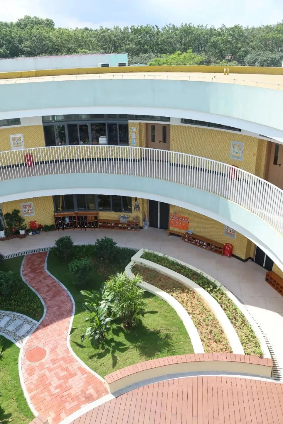 一樓:幼兒園區是探索世界的起點,而中庭的「四合雅苑」則成為師生交流的溫馨天地。