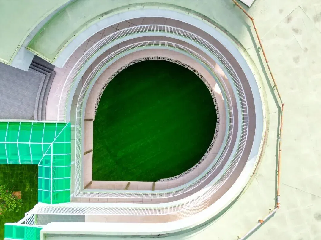 新校舍的核心設計理念源自「三圓二方」的建築形體,宛如一枚寓意深遠的古代銅幣,深刻體現了「外圓內方」的處世智慧。