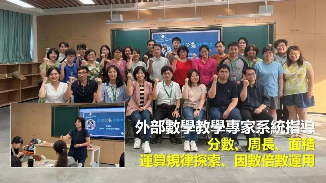 ● 數學教學:從具體操作到抽象思維 我們以「奠基思維,素養導向」為目標,強調數學概念的深刻理解。透過教具操作,讓抽象概念變得具體可感;引入起承轉合(EECC)教學系統,引導教師設計更具探究性的課堂,這不僅是一種方法論,更是培養學生真正智識好奇心、而非機械式記憶的利器,系統性地培養學生從具體操作到抽象推理的完整思維過程。