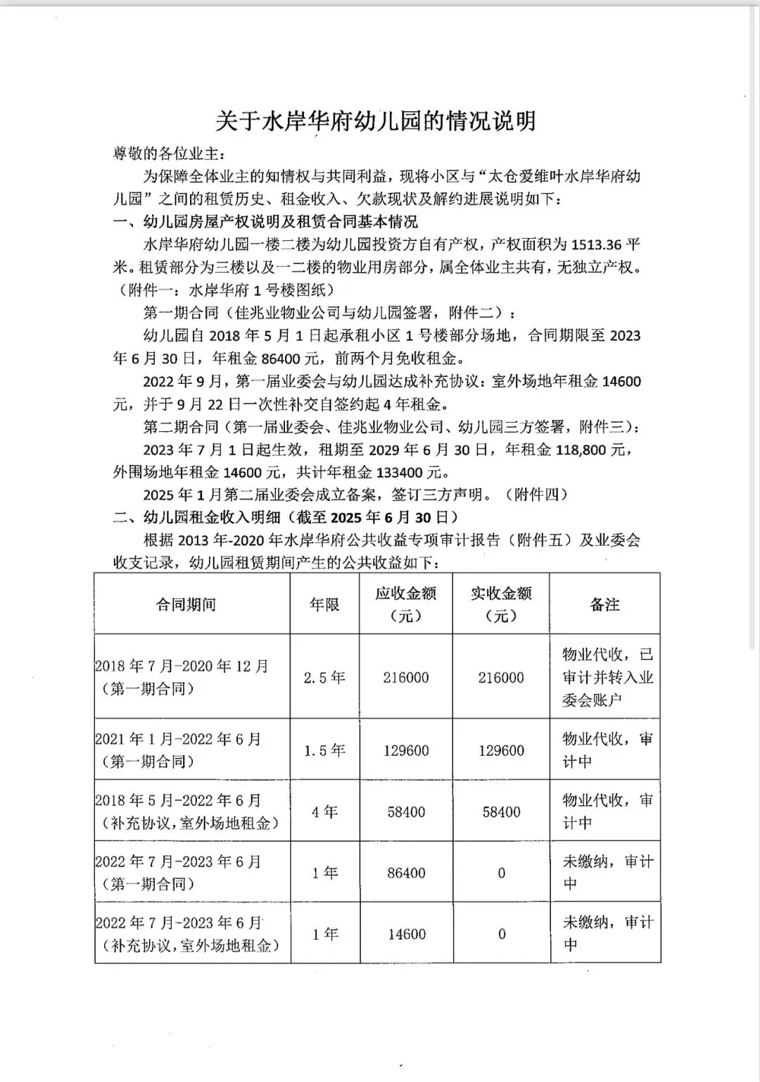 关于水岸华府幼儿园的情况说明