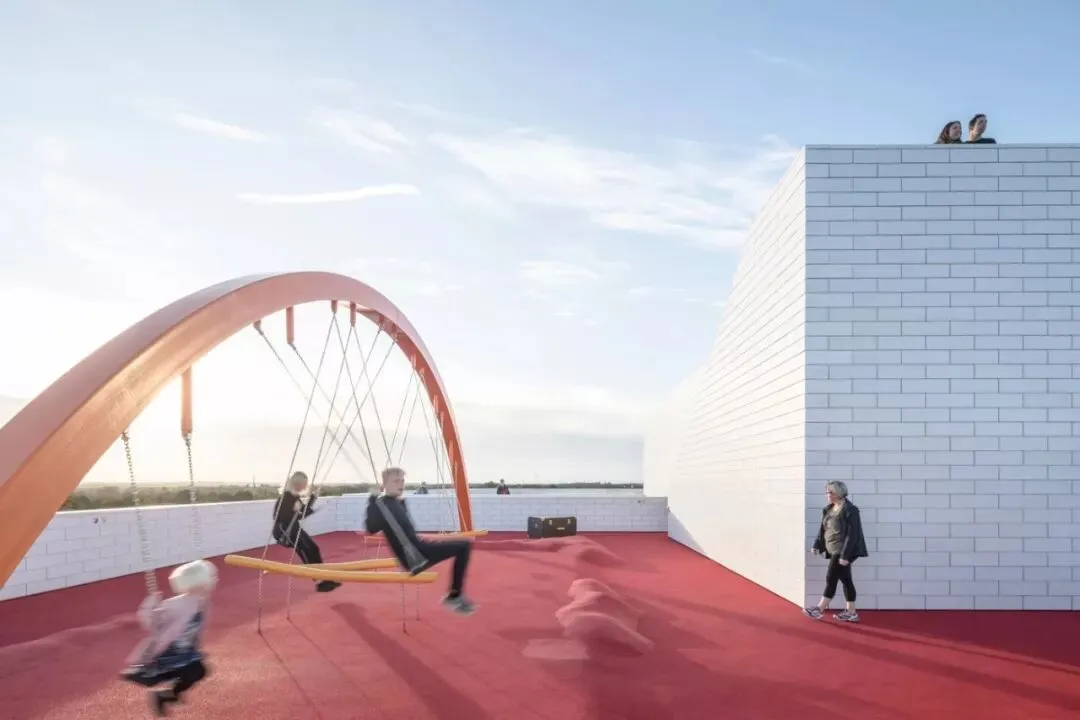 虽然屋顶是由Masterpiece Gallery画廊设计,但与BIG的室内酷玩设计风格也是极为搭配。