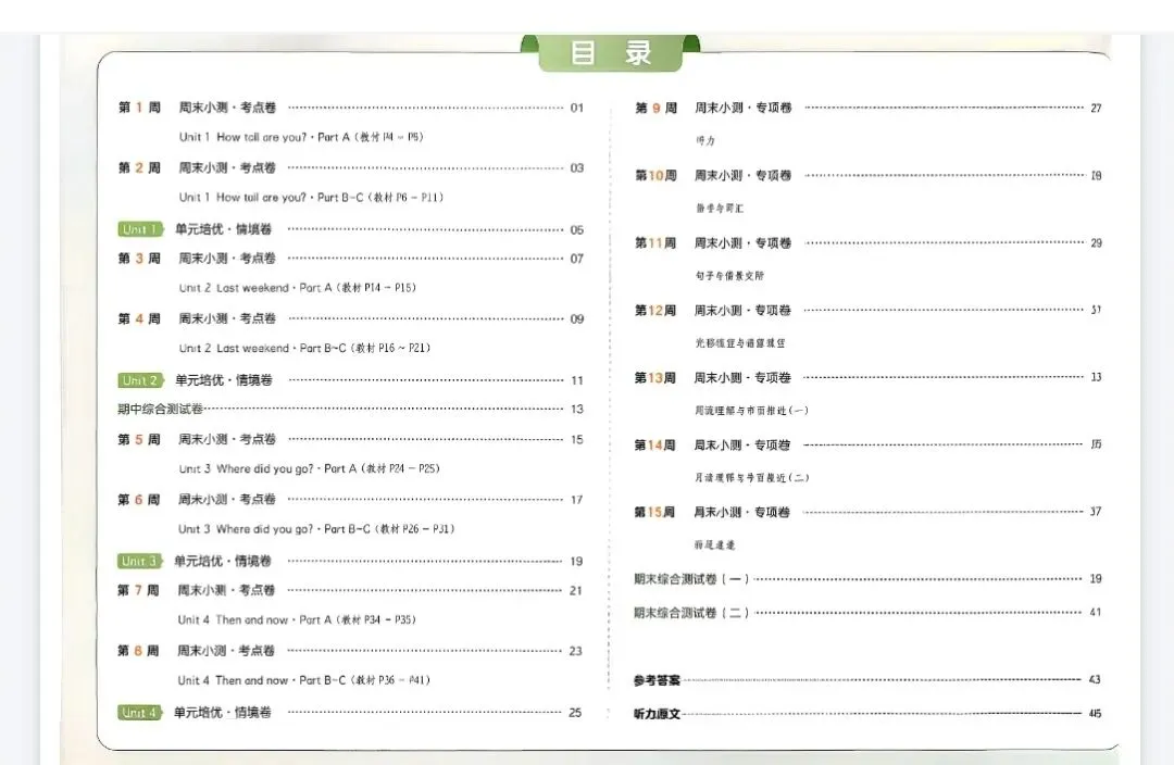 ✅✅26春英语《一本周末小测卷》3-6年级人教PEP