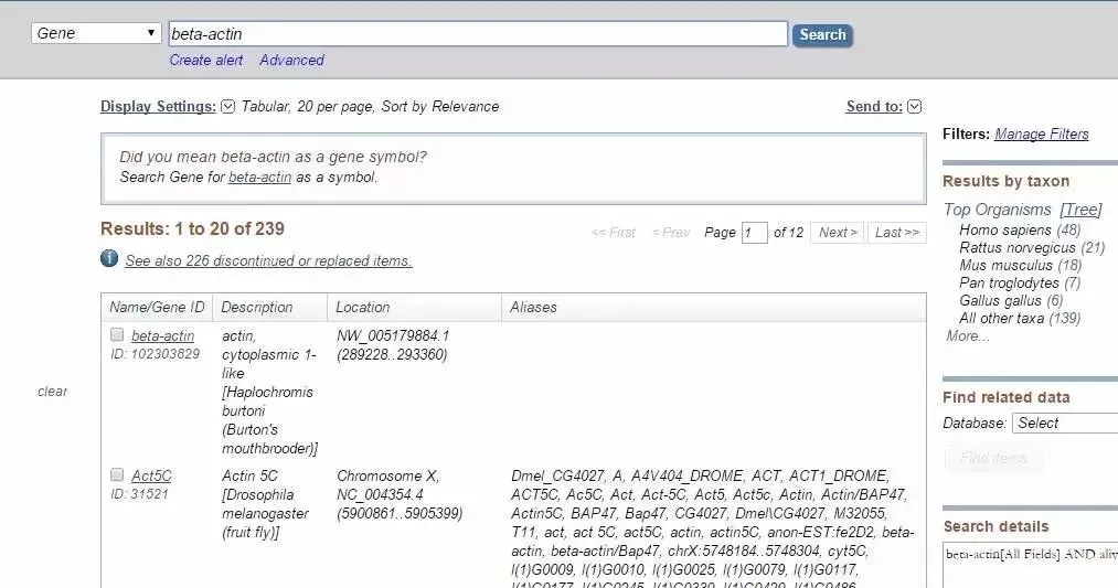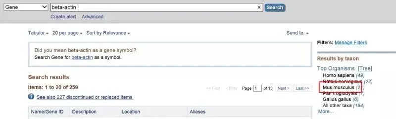 结果就出来了,小鼠beta-actin的NCBI gene ID是11461,而actb则是小鼠beta-actin的NCBI gene symbol。