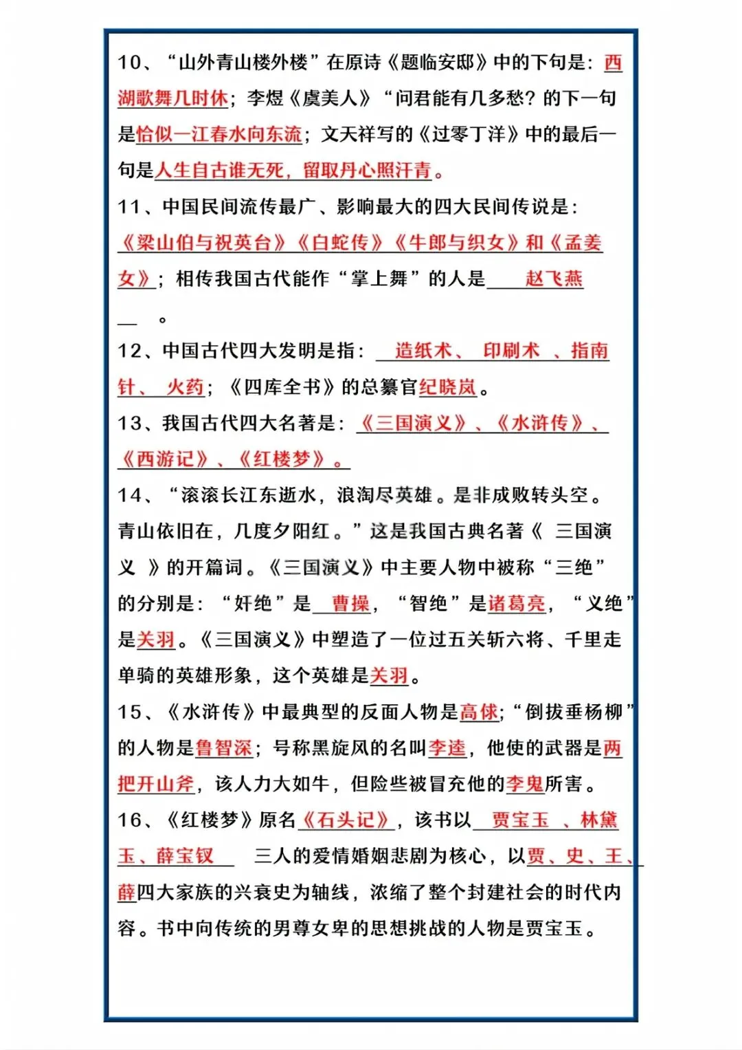 【免费下载】六年级(下)语文 必考文学知识汇总,PDF电子版,可打印