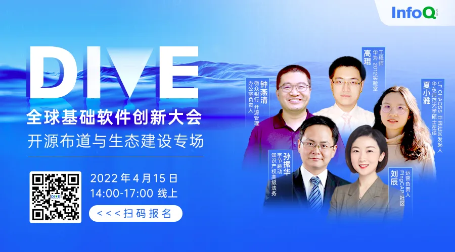 现在,是时候认真讨论基础软件的发展了!InfoQ 将于 4月15、16日在线上举办 DIVE 全球基础软件创新大会。本次大会汇集50+位领域专家,围绕开源、操作系统、中间件、编译语言、数据库等做最新技术跟进,也将围绕基础软件备受关注的人才建设、投资创业等问题进行深入洞察。