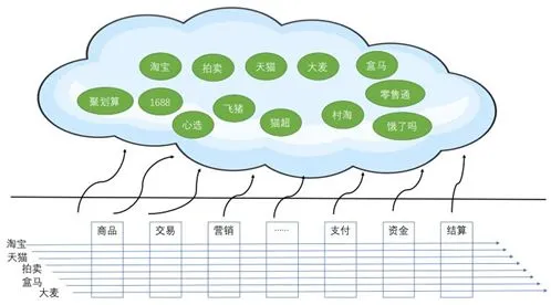 同时我们还要建立一套业务对象协作机制,天猫和淘宝互相协同,大麦和飞猪是可以协同的,让业务和业务之间产生连接,共同构成一个动态繁衍的生态体系。如果我们能把整个阿里巴巴商业体系图示化出来,买家卖家进入淘宝天猫就会像接入游戏,进入天猫超市就像真的进入一家超市,做拍卖真的要敲锤一样,做出虚拟世界的真实感觉。