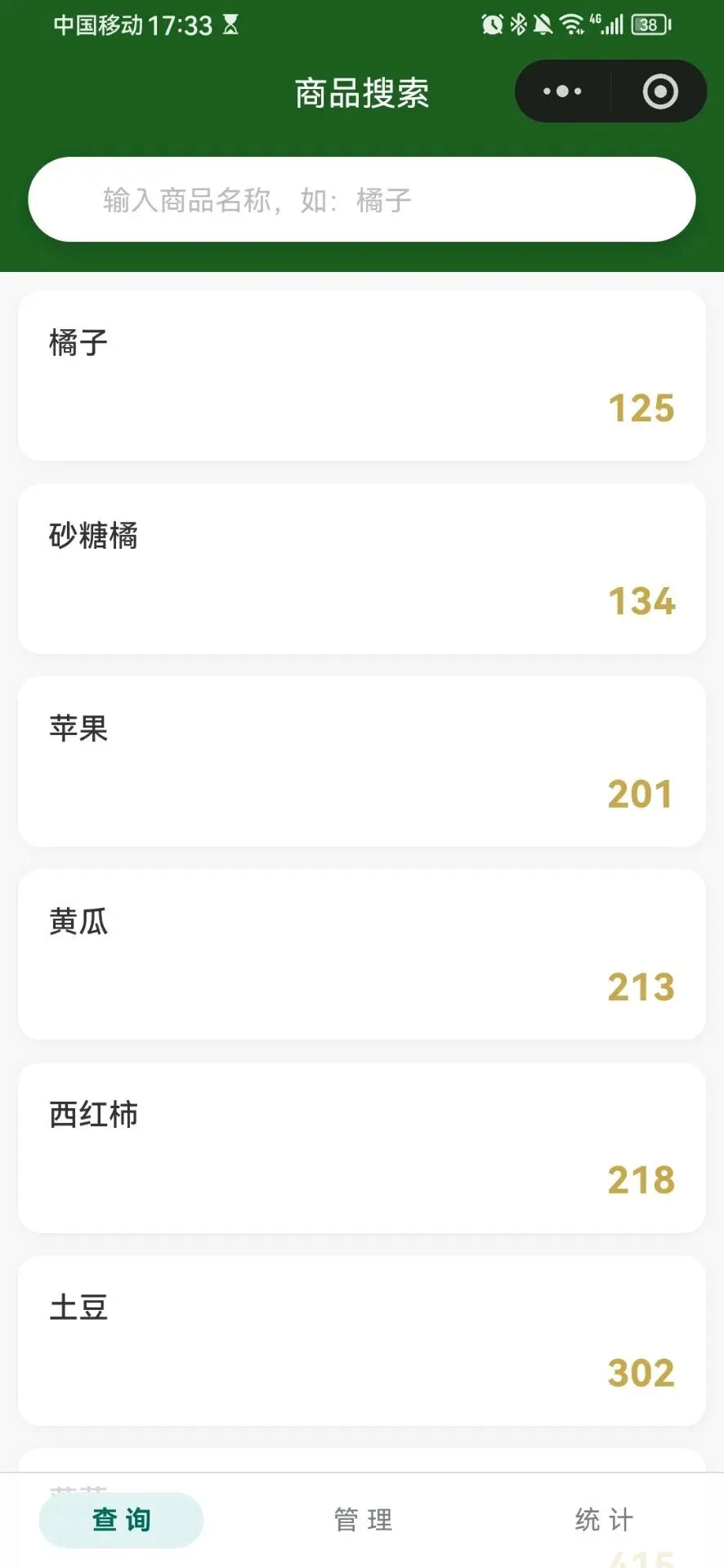 想法很简单——做一个查询工具,操作员在搜索框里输入”橘子”,立刻显示编号 125,就这一个功能。