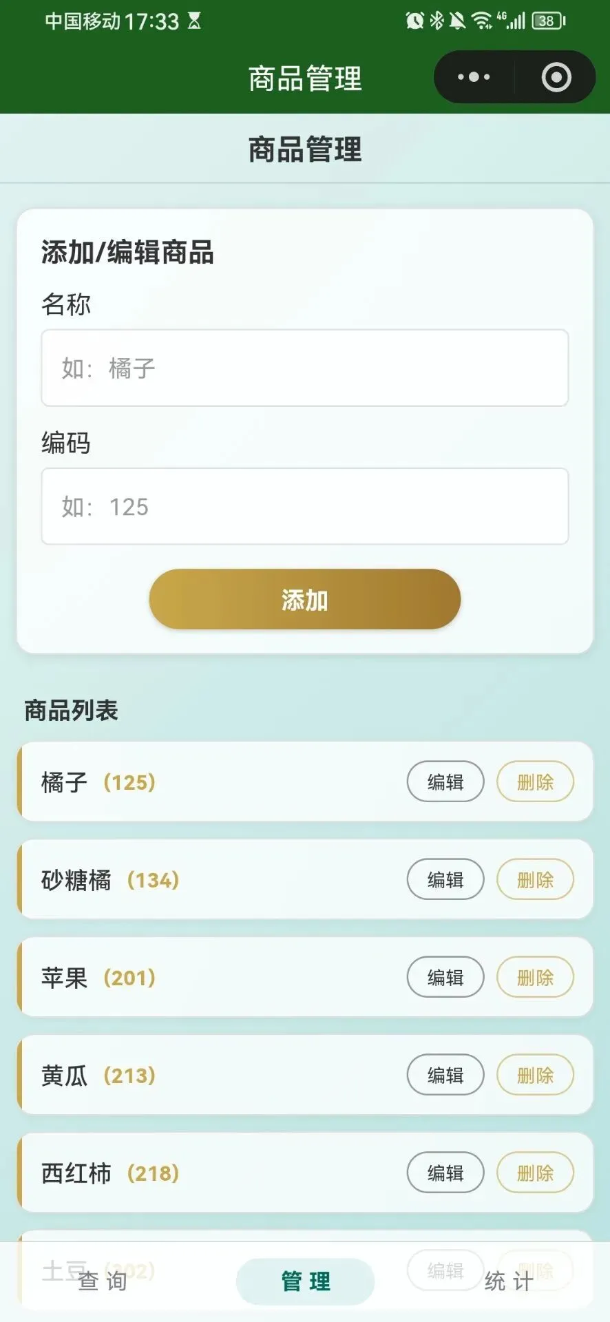 他们用的是手动称重秤,每次称东西,都得自己按编号。橘子是 125,砂糖橘是 134,黄瓜是 213……每种商品对应一个数字标号,秤根据编号算出单价,再乘以重量,打出标签。