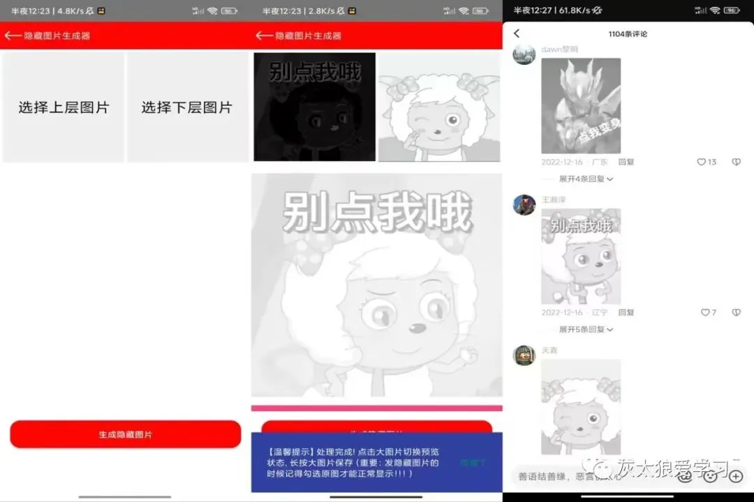 一款最近很火的隐藏图片生成器,选择图片一键制作 十分神奇,比如说缩略图吸引眼球的内容,比如是个妹子,别人一点开变了成骂人的表情包,非常的有意思,还有表白什么的,自己可以发挥。