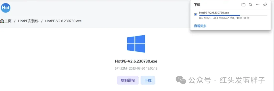 点击下载站,找到 hotpe 安装包,这里有exe 和 iso 两种格式,下载 exe 的文件格式,他可以直接制作u盘启动盘,并且可以把 pe 安装在本地。iso 的文件格式可以直接放到 ventoy等启动盘中