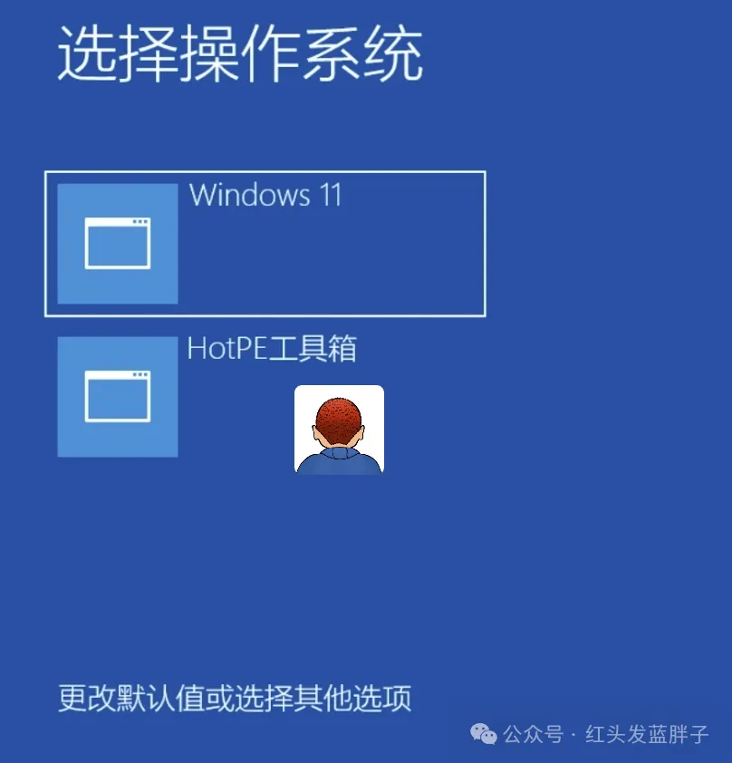 重启后在进入windows系统前,会有一个引导菜单, 选择进入 windows11 还是 HOTpe 工具箱,默认情况在 3 秒后直接进入 windows系统,如果遇到问题,可以选择进入pe工具箱