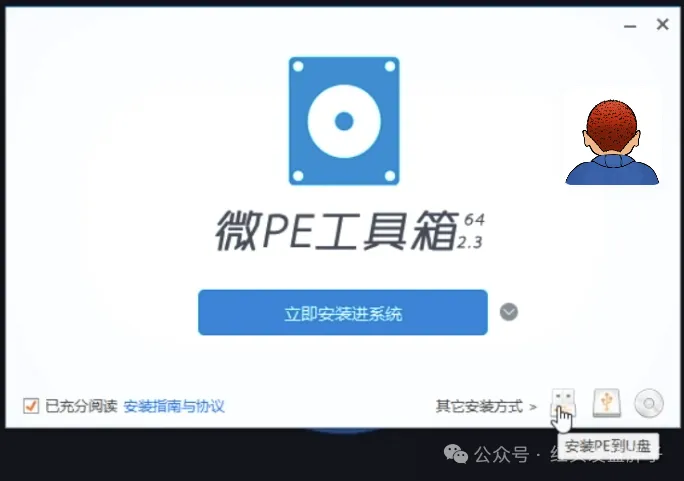 安装选项基本都保持默认即可,同样支持自定义壁纸。然后点击立即安装pe到u盘