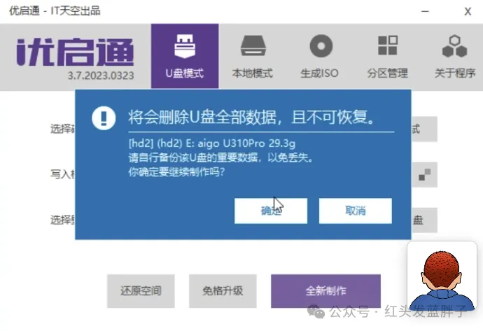提示会格式化U盘,有重要数据一定要提前备份