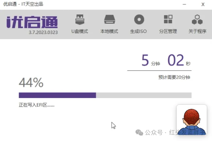 大概5分钟左右就可以制作完成一个32GB的u盘启动盘