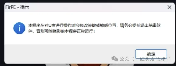 软件运行后,提示建议退出一下杀毒软件。如果不介意的话可以继续操作,如果介意可以换一个pe